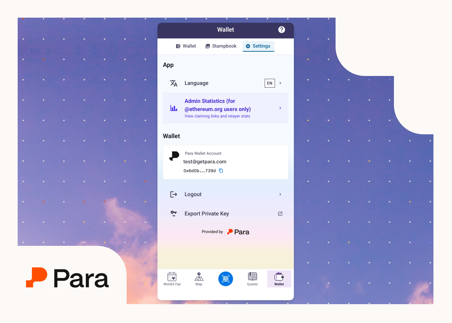 Para 2.0 introduces a new Account Widget, an in-app panel that displays wallet addresses, assets, and enables the ability to on-ramp, send, and withdraw their assets, embedded right into your application’s UI.