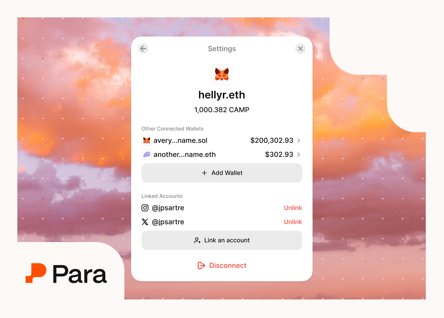 Account Linking transforms Para from just a wallet into an identity layer. Your app can tailor experiences based on linked context (e.g., welcome back users by name, unlock features for users with certain social links or onchain achievements). It’s a powerful way to increase engagement and retention by recognizing the user as more than an address.