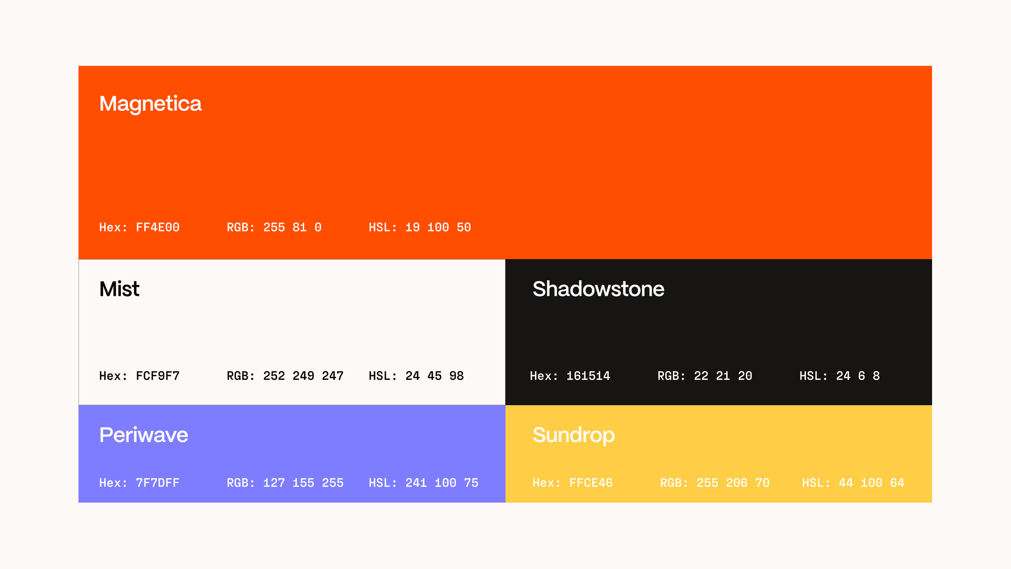 Our new color palette builds upon our history as Capsule, leaning into and extending the vibrant, magnetic orange of our previous brand.